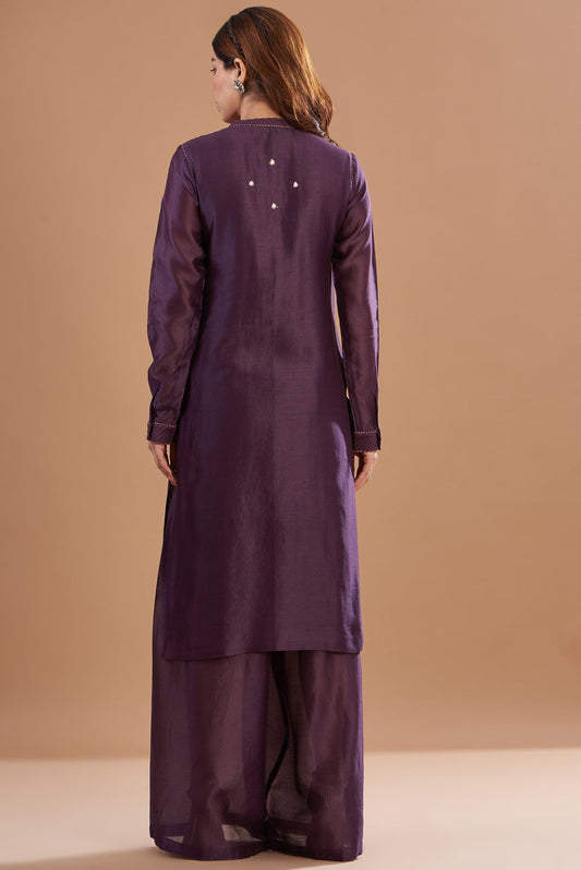 Purple Chanderi Embroidered Kurta Set