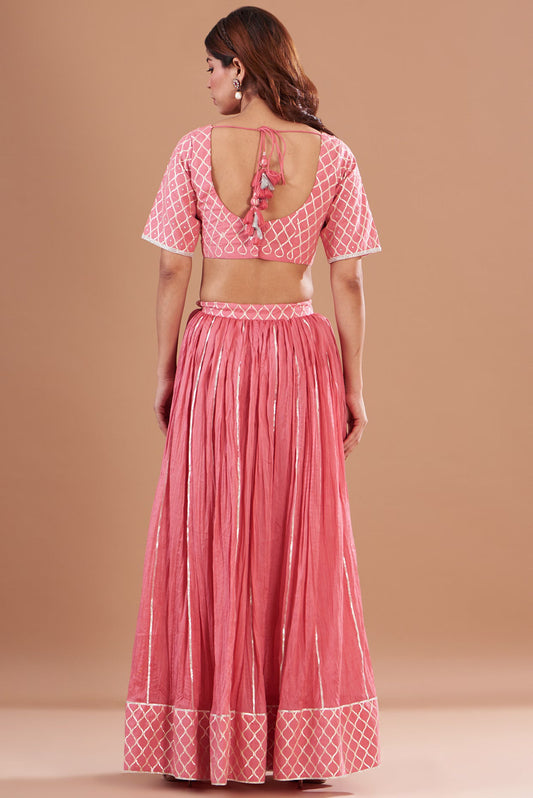 Pink Chanderi Embroidered Lehenga Set