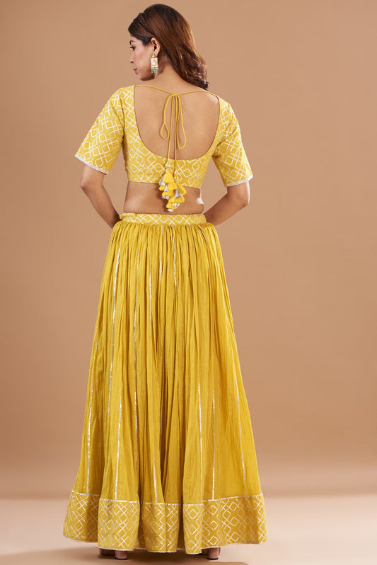 Yellow Chanderi Embroidered Lehenga Set