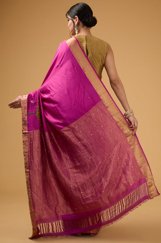 Mustard & Plum Silk Sequins Motif Embroidered Saree Set
