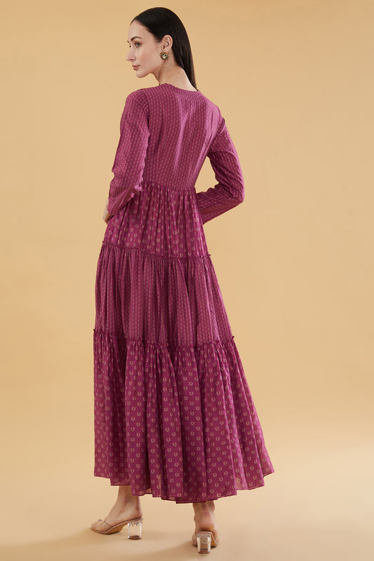 Maroon Cotton Silk Floral Printed Maxi Dress