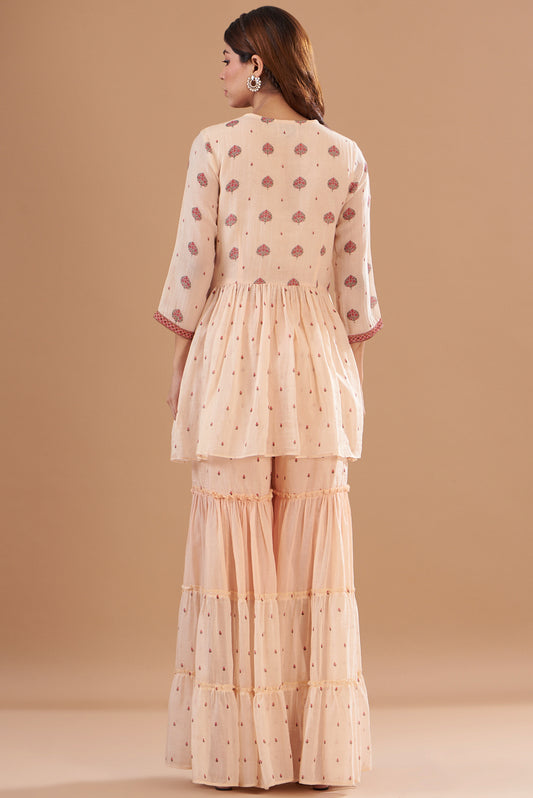 Ivory Silk Blend Floral Printed & Zari Embroidered Kurta Set