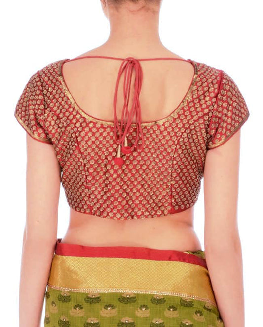 Green Ornamental Pattern Thread Work Embroidered Blouse