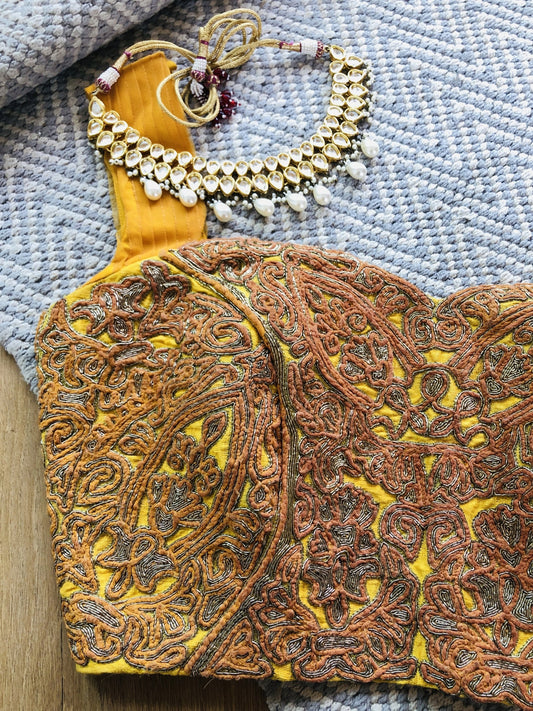 Pink Floral Resham and Zari Embroidered Lehenga and Orange Blouse Set
