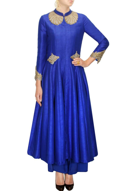 Cobalt blue heavy embroidered jacket with dhoti pants