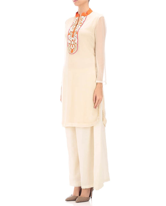 ivory straight suit set with palazzo pants
