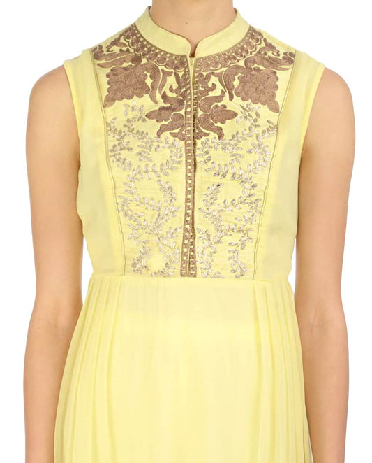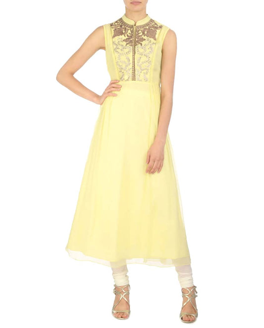 Cream Leaf Embroidered Dress with Churidar