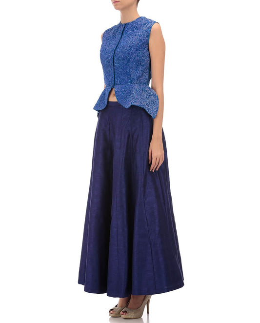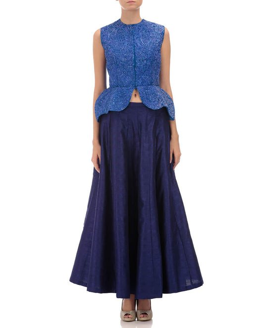 Cobalt blue A-line short jacket with blue dhoti pants