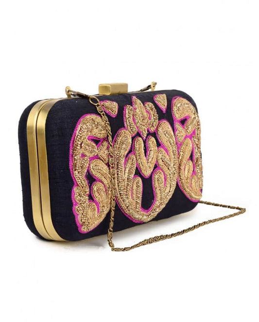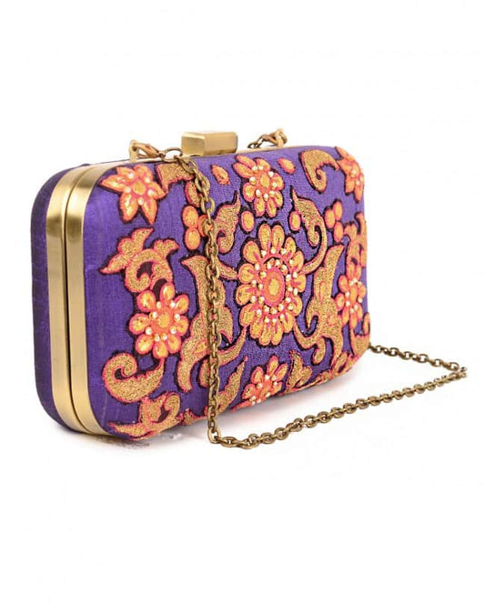 Mauve Pink and Gold Embroidered Box Clutch bag