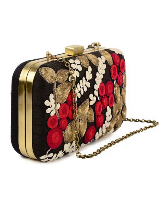 Heart & Bloom Hand-Embroidered Clutch – Ivory & Multicolor