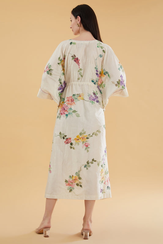Ivory Cotton Silk Floral Hand-Painted Kaftan