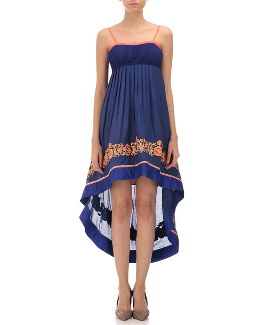 Coral Pink Floral Embroidered Dress with A-line silhouette