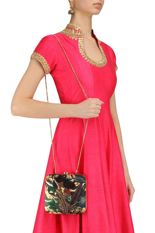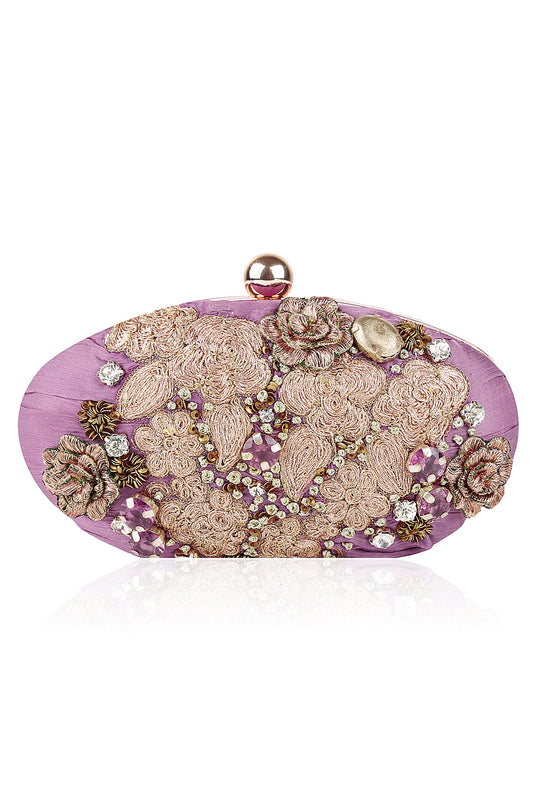 Mauve Pink and Gold Embroidered Box Clutch bag