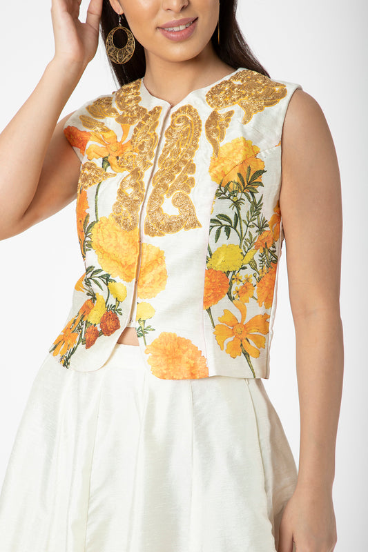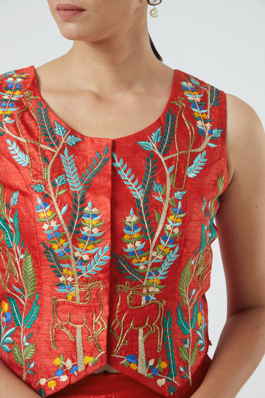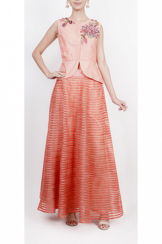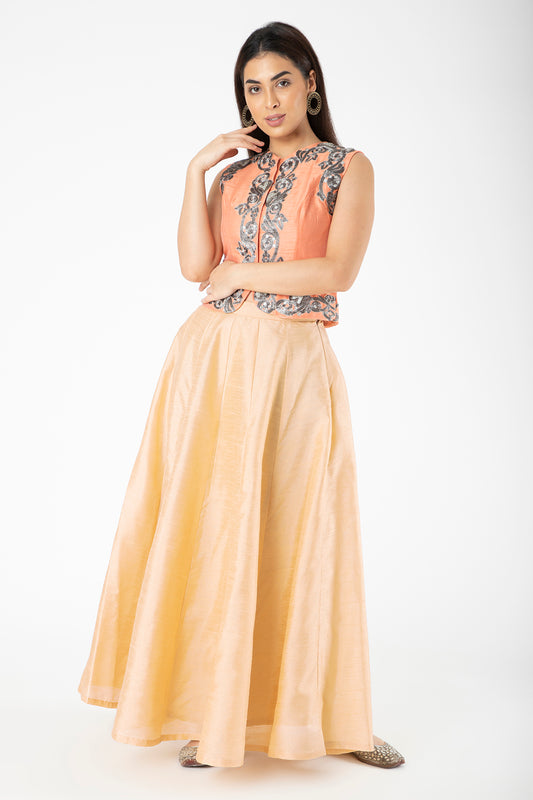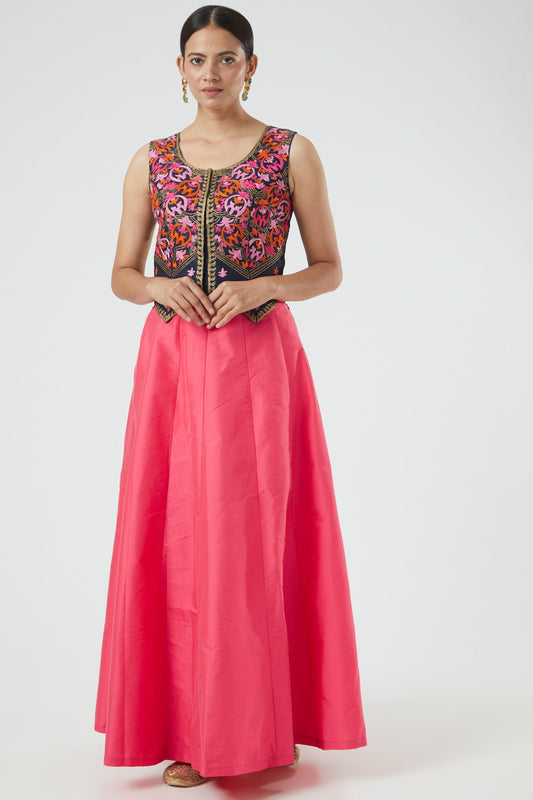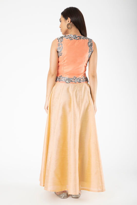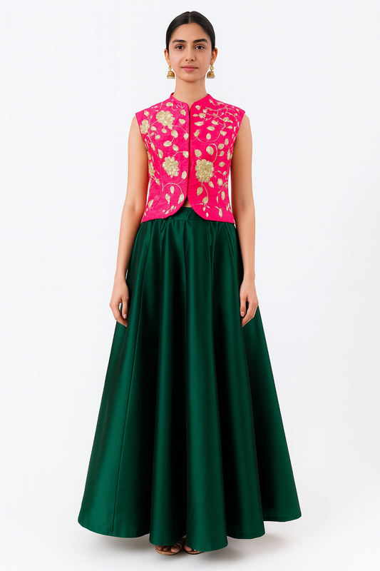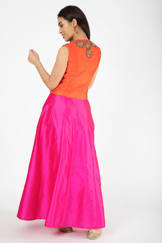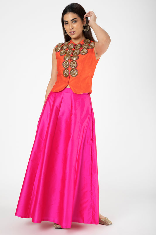 Orange Embroidered Jacket With Fuchsia Lehenga