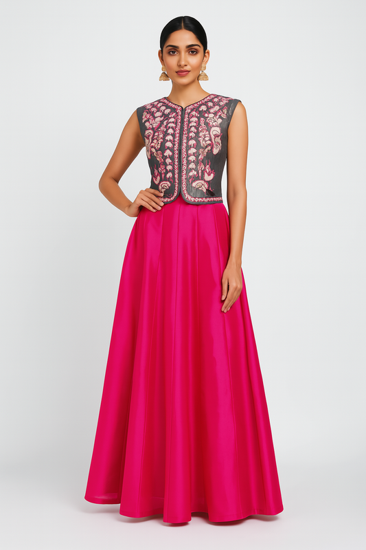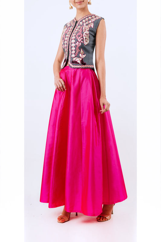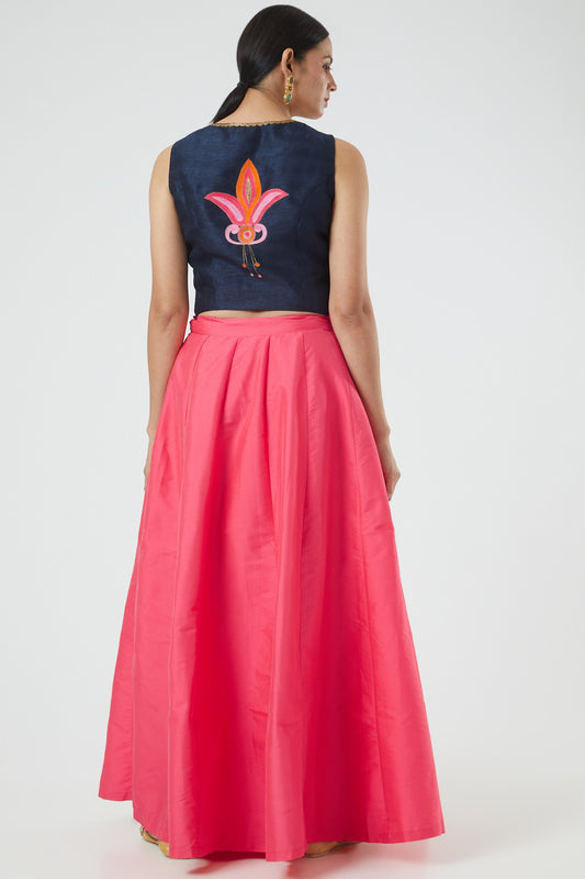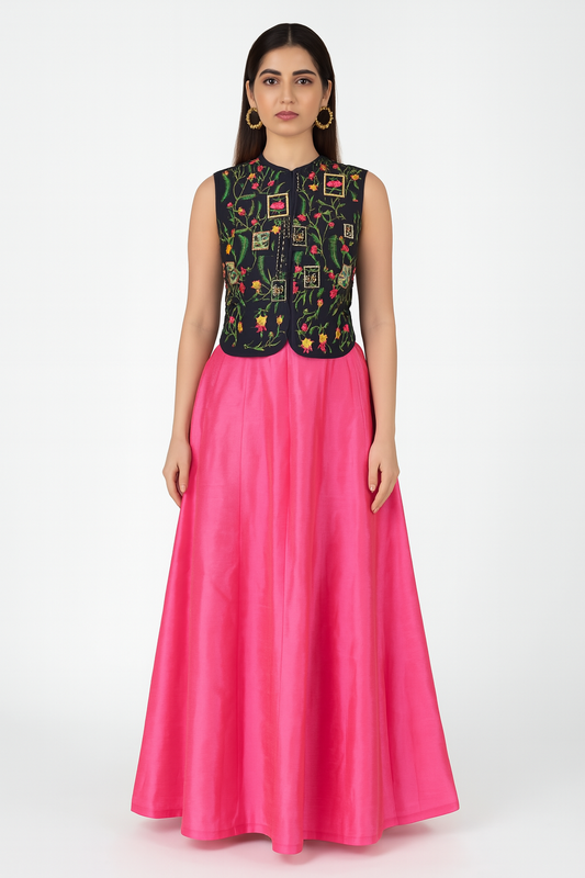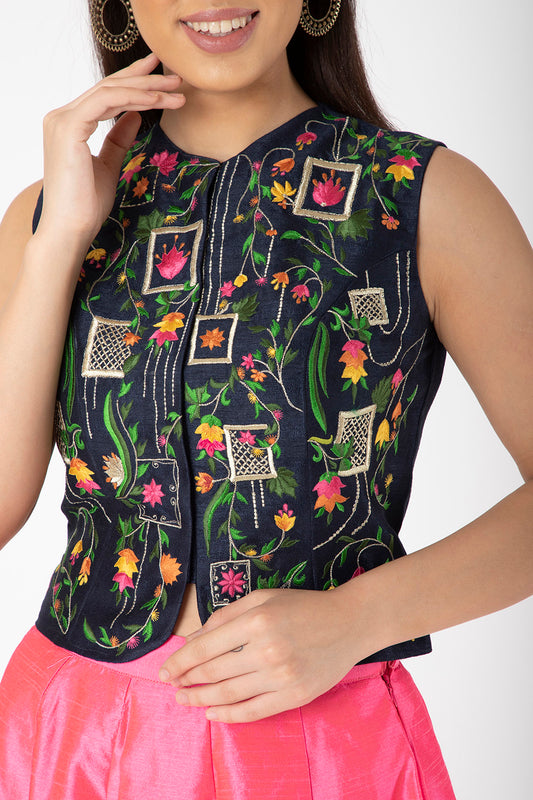 Navy Blue Embroidered Jacket With Fuchsia Lehenga