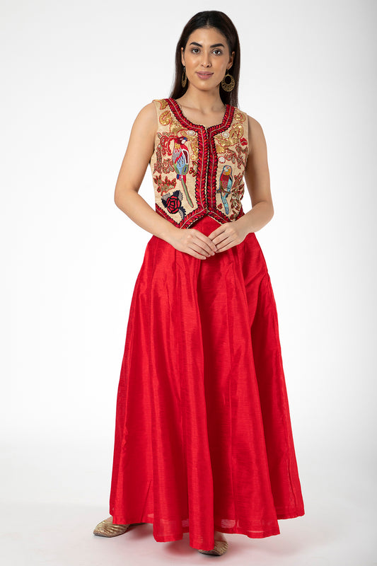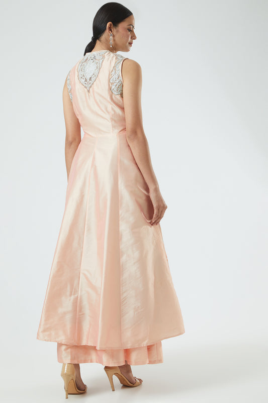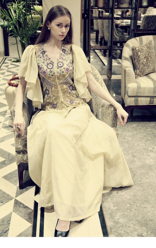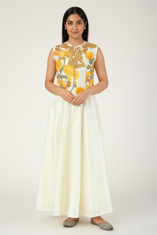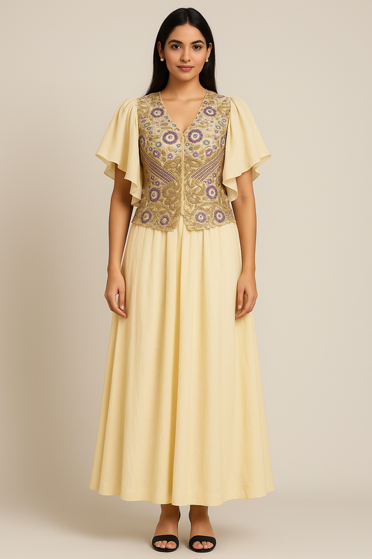 Yellow Silk Blend Zari Embroidered Anarkali Set