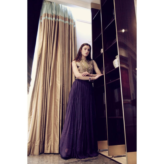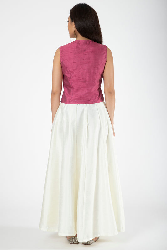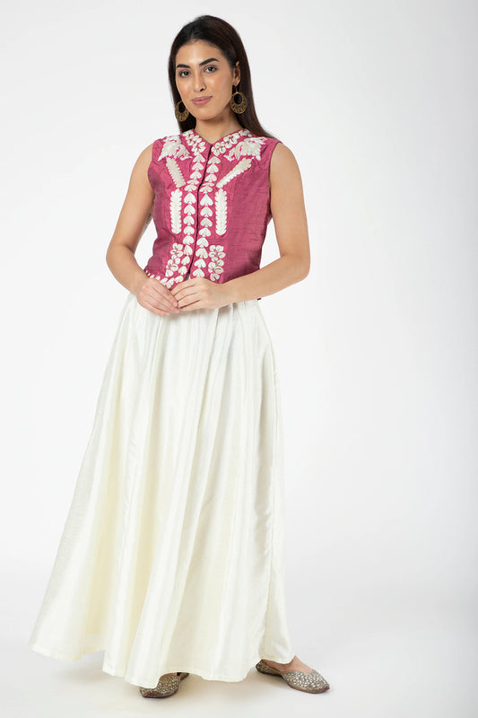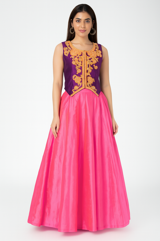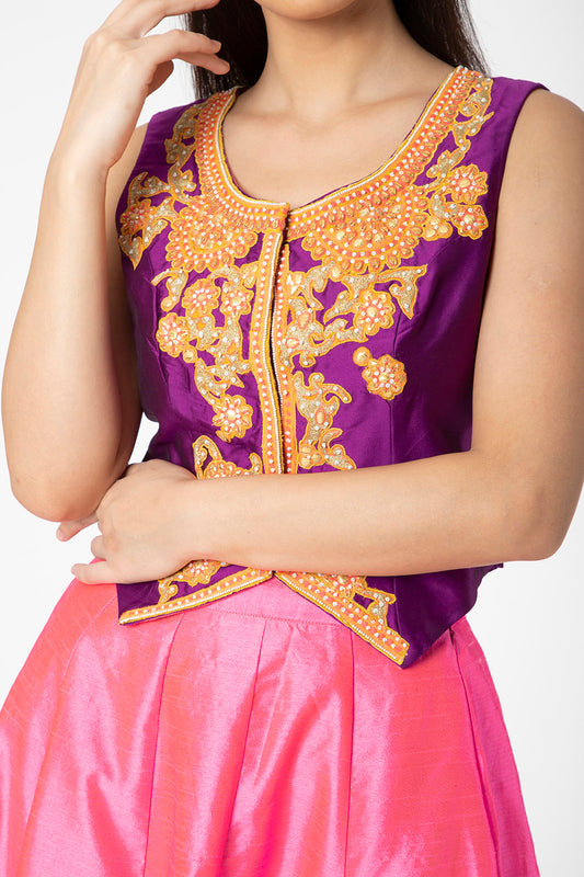 Purple Embroidered Jacket With Fuchsia Lehenga