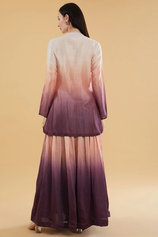 Turquoise Jaal Embroidered Jacket Kurta with Mauve Lehenga Skirt and Dupatta Set