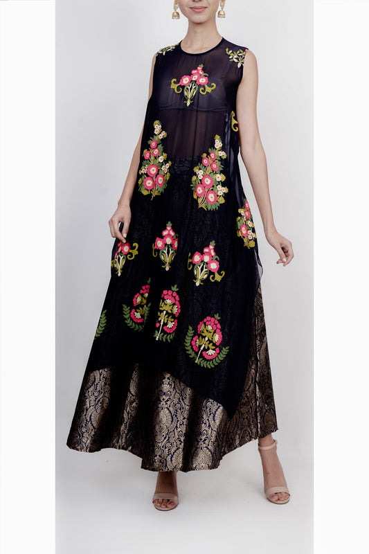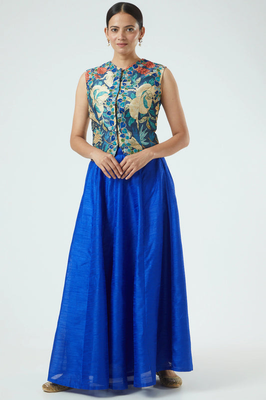 Navy Blue Embroidered Jacket With Teal Lehenga