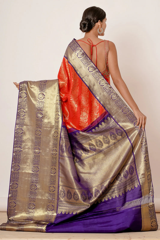 Orange Kanjivaram Silk Saree with Contrast Blouse