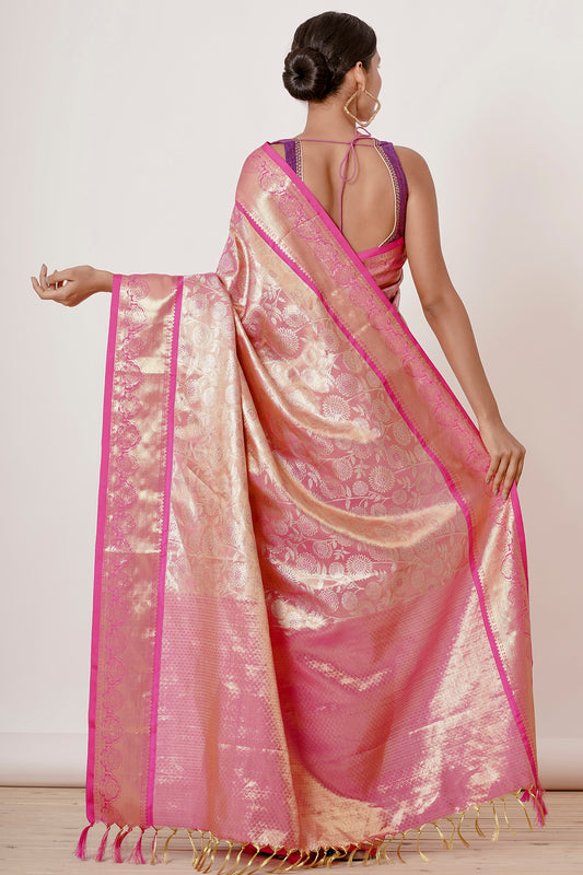 Pink Dharmavaram Silk Saree with Pink Blouse
