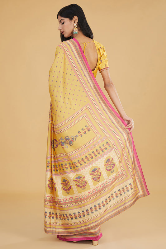 Pink Viscose Modal Silk Floral Printed Saree Set
