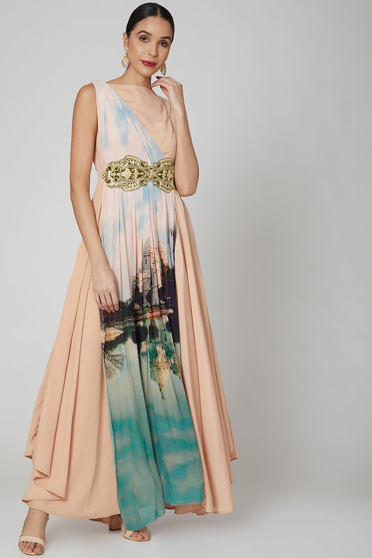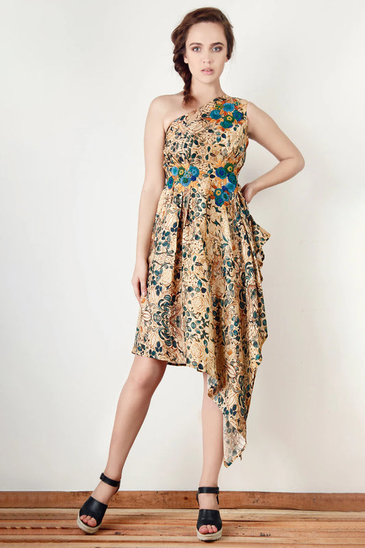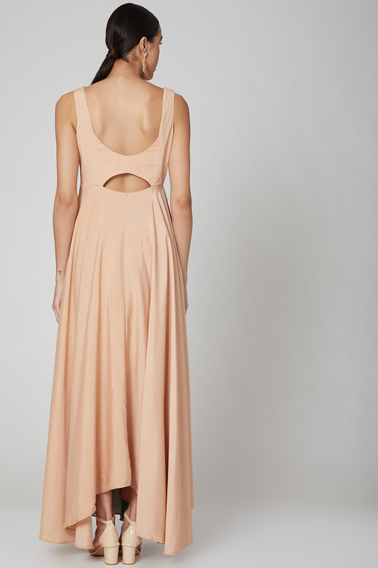 Coral Pink Floral Embroidered Dress with A-line silhouette