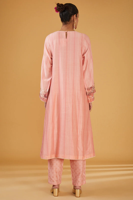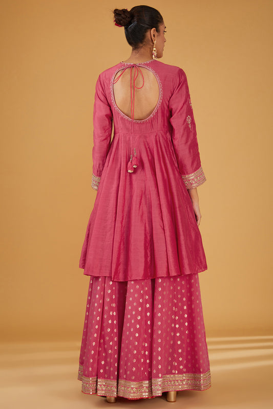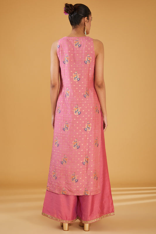 Onion Pink Brocade Floral Printed & Zari Embroidered Kurta Set