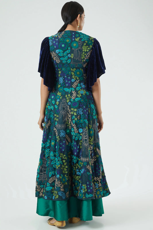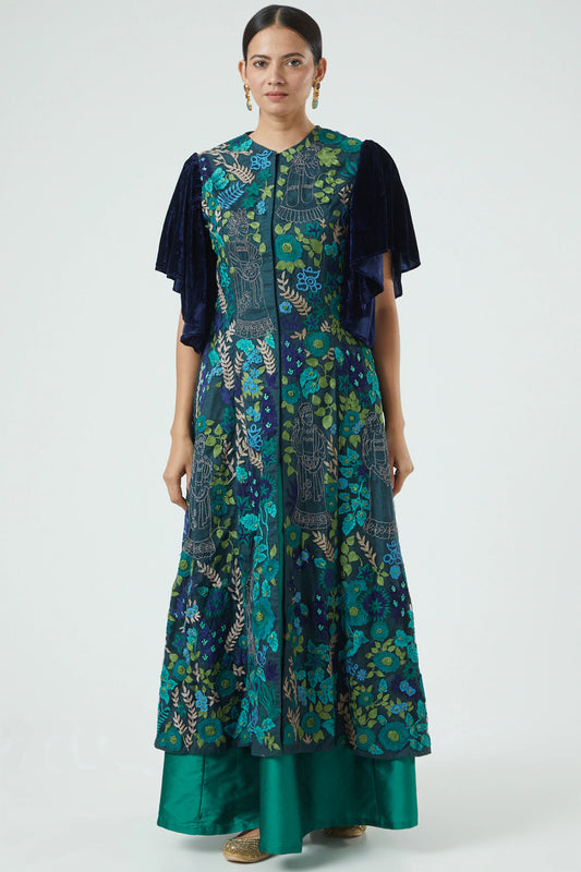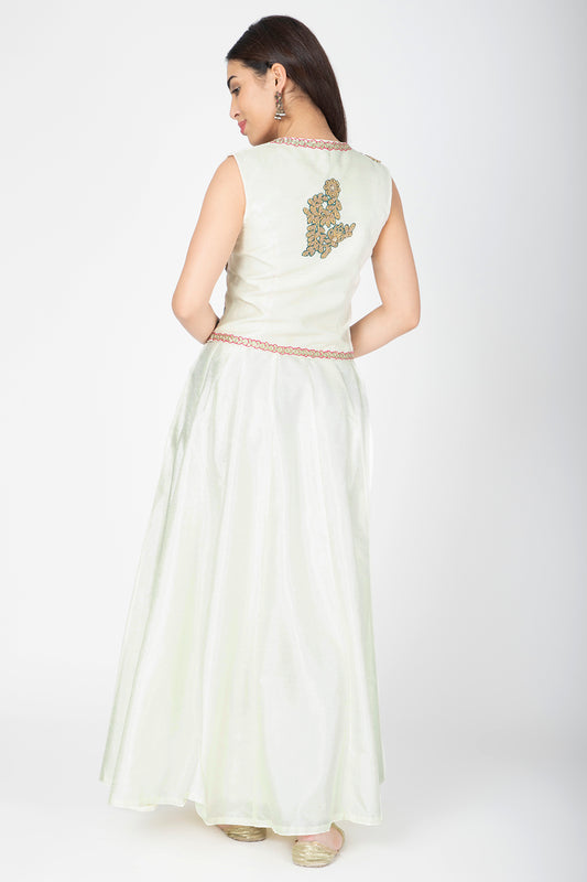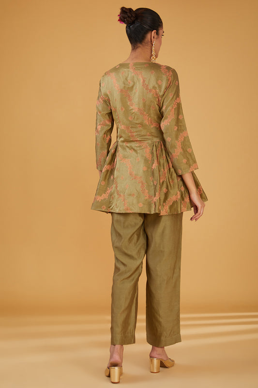 Olive Green Silk Blend Zari Embroidered Co-Ord Set