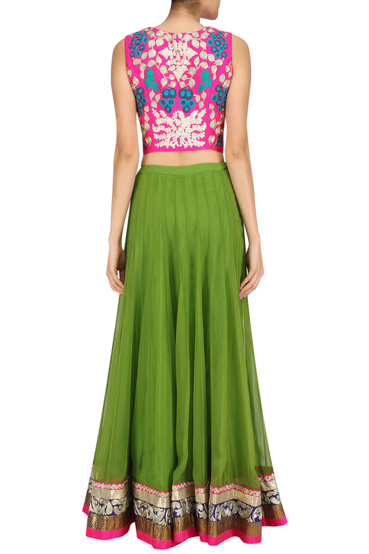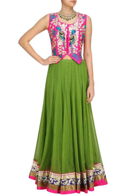 Orange Embroidered Jacket With Fuchsia Lehenga