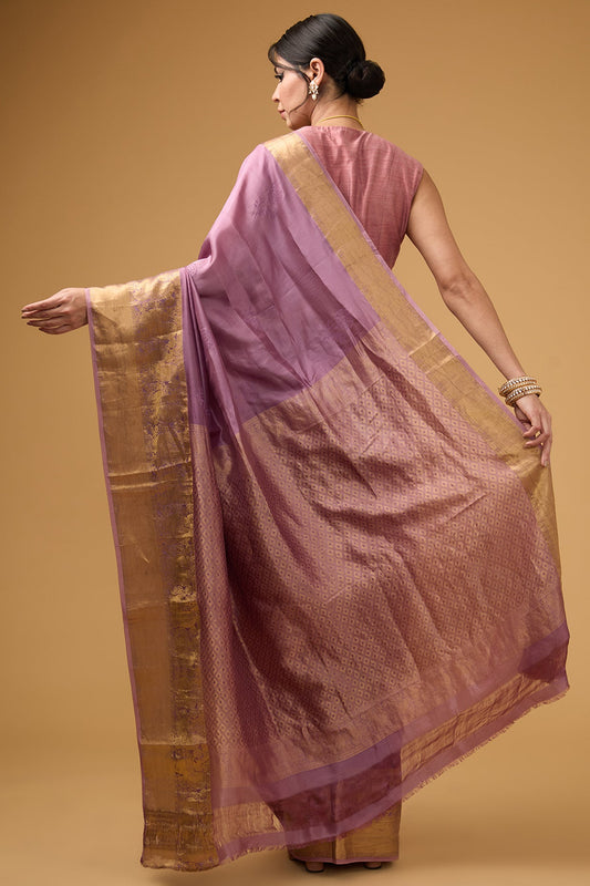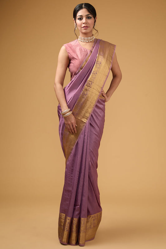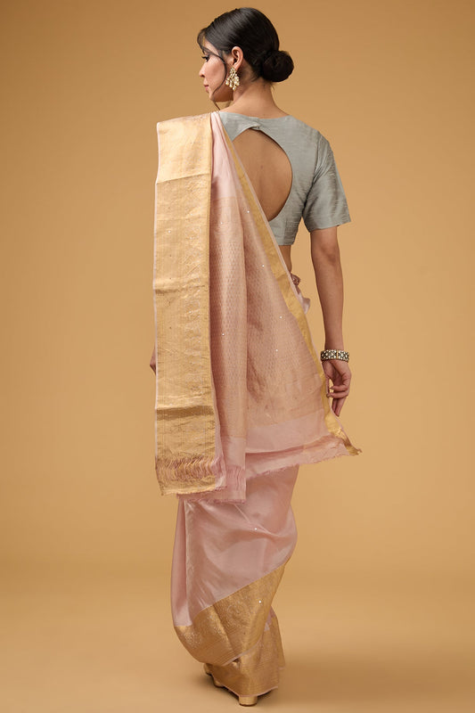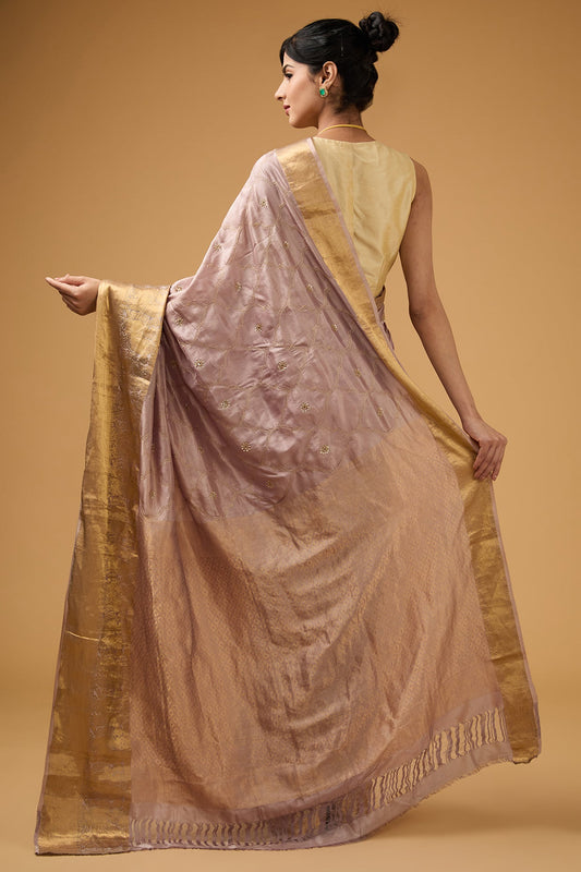 Pink Plumish Silk Sequins Motif Work Saree Set