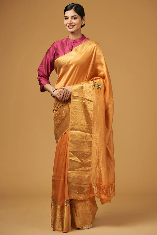 Mustard Yellow Silk Floral Embroidered Saree Set
