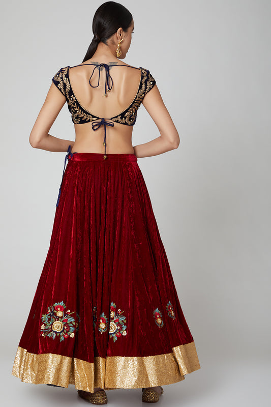 Maroon Velvet Lehenga with Gold Sequins Embroidery