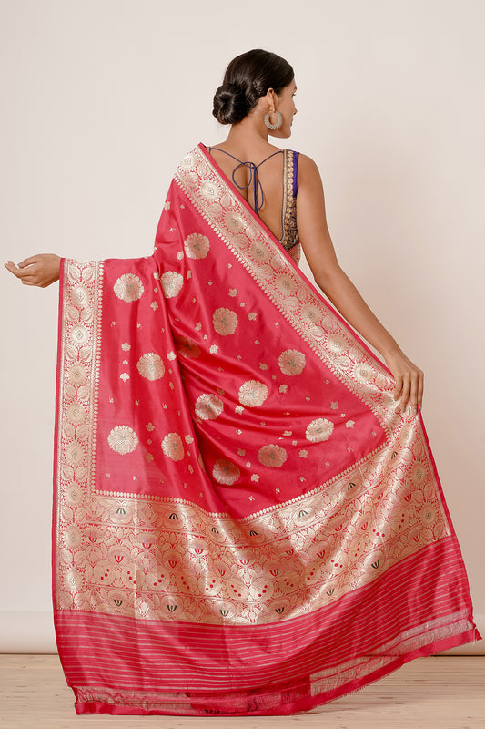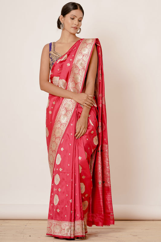 Red Bink Banarasi Silk Saree with Velvet Red Vlouse