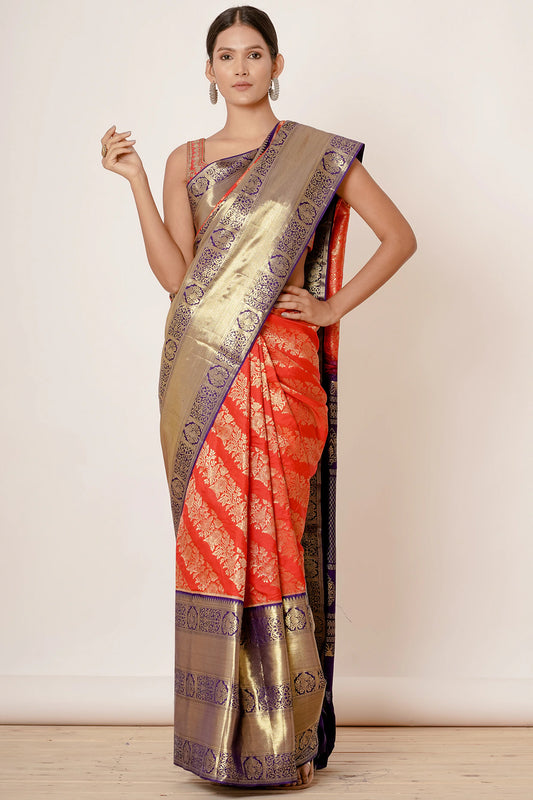 Orange Kanjivaram Silk Saree with Contrast Blouse