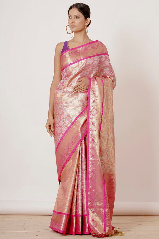 Onion Pink Organza Banarasi Silk Saree with Black Blouse