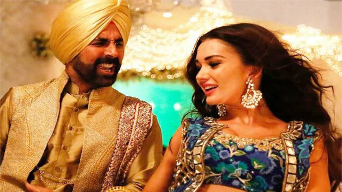 Amy Jackson In Blue Blouse, jacket and Dhoti set