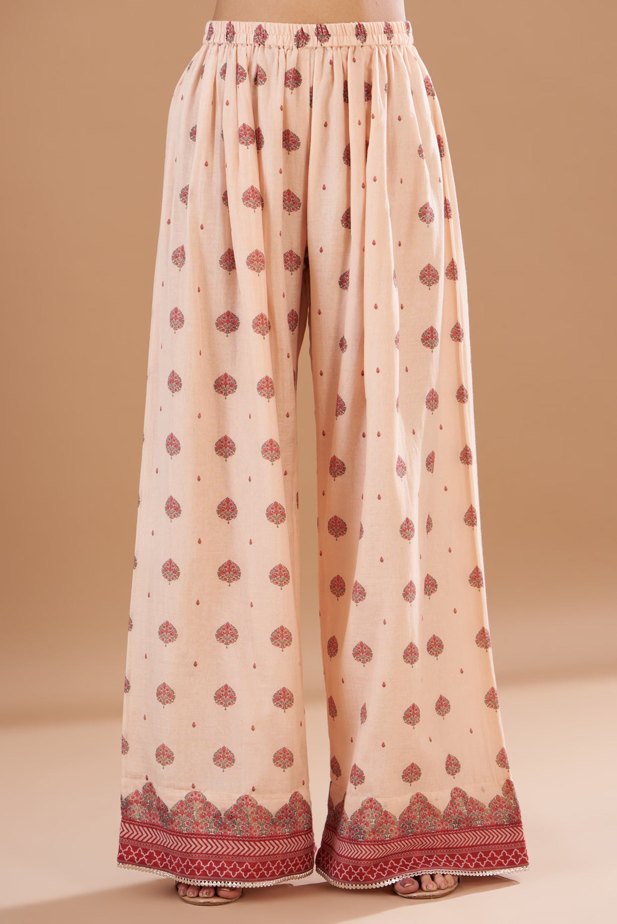 Our Beige Chanderi Coord set is a beautiful blend of traditional craftsmanship and modern style. The tunic top, crafted with a luxurious chanderi base, features intricate hand embroidery and vibrant digital prints, creating a stunning visual effect.