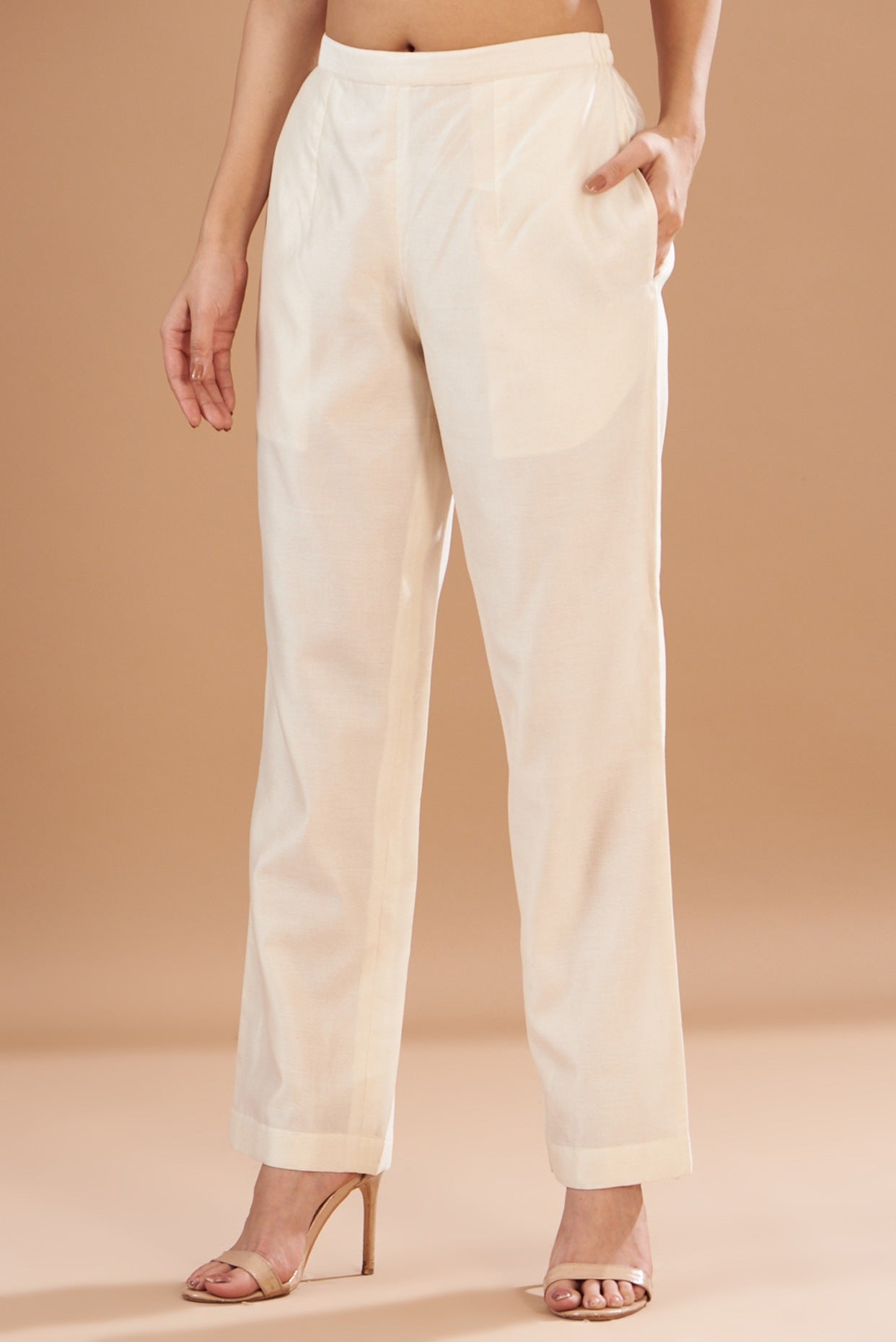 Ivory Chanderi Embroidered Anarkali and pants