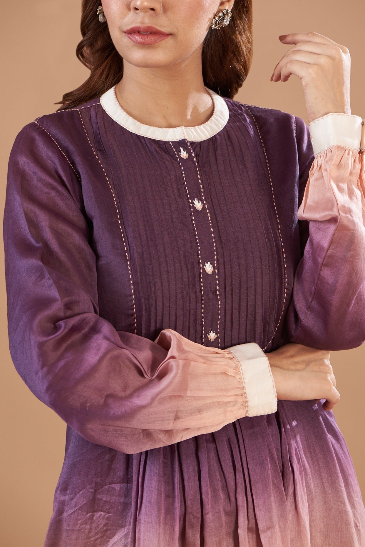 With its unique ombre effect, comfortable chanderi base, and exquisite embellishments, this kurta set is a must-have for anyone looking to elevate their ethnic wear style. Whether you're attending a formal event or just want to add a touch of elegance to your everyday look, this kurta set is sure to impress.