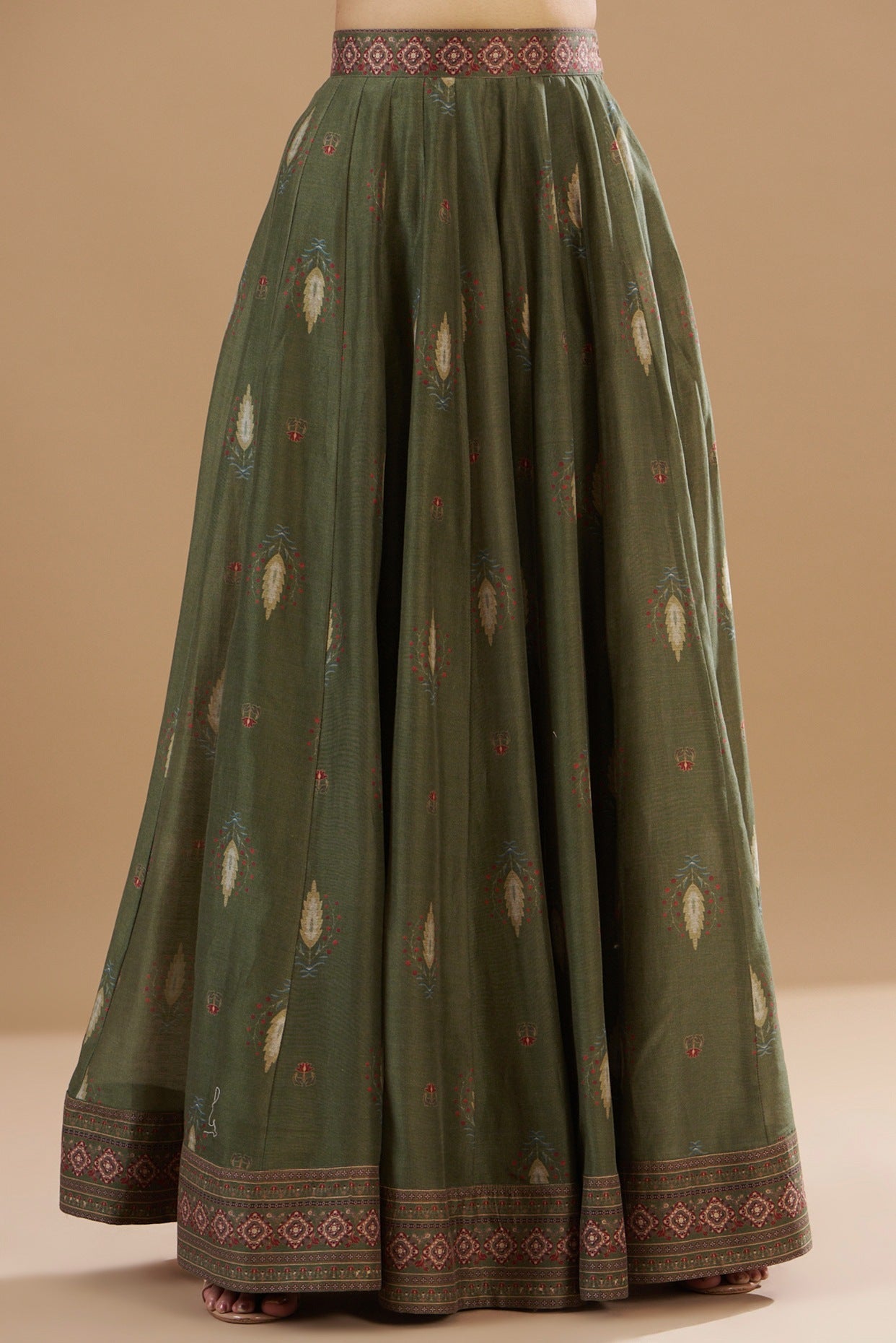 Green Chanderi Printed & Embroidered Lehenga Set