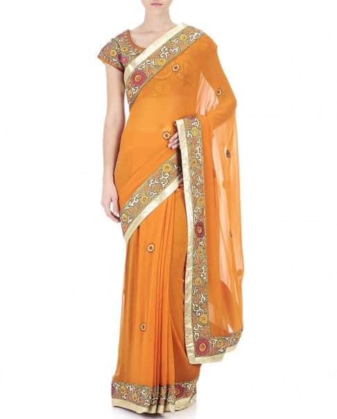 Saffron Multicolor Embroidered Sari & Blouse