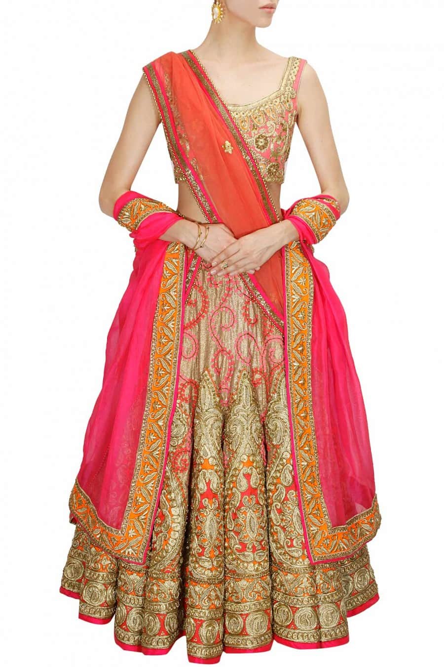 Blouse: Silk 1st Dupatta: Net 2nd Dupatta: Net Lehenga: Gold Jacquard |