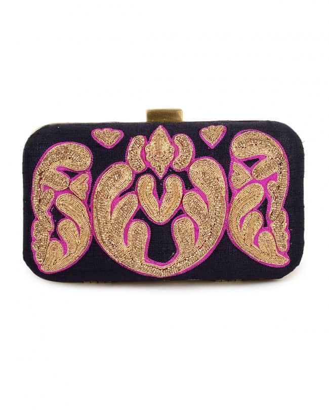 Black and pink zardozi embroidered clutch