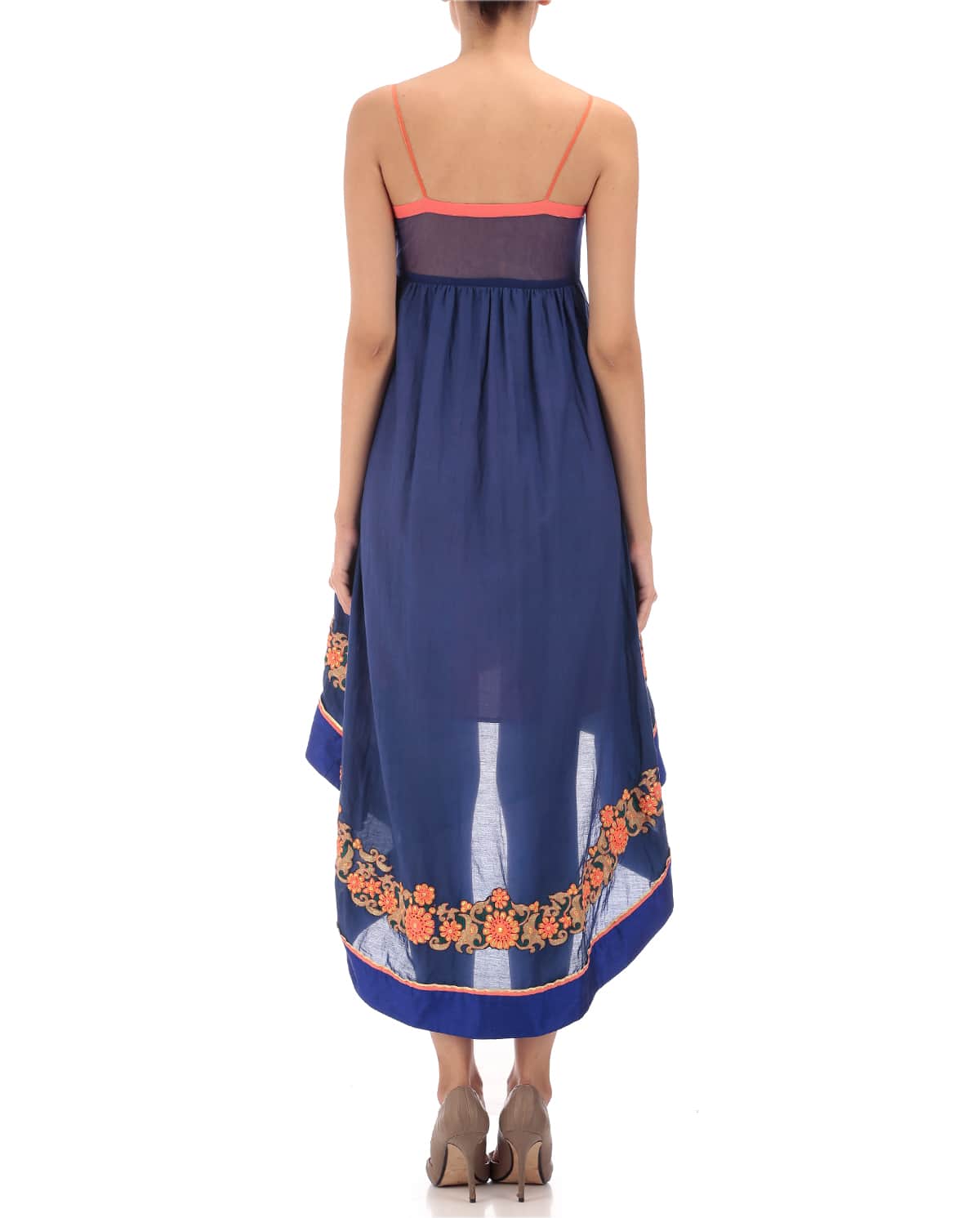 Blue Asymmetrical Dress with Embroidery - Elevate your style with this show-stopping blue asymmetrical dress, featuring an intricate high-low hem adorned with exquisite Resham embroidery. Delicate straps add a touch of femininity, while the small, multicolored floral motifs create a contemporary and whimsical effect. The asymmetrical silhouette adds a dash of modernity, making this dress perfect for formal events, weddings, or special occasions. The Resham embroidery shimmers with subtle sophistication, elevating this dress to a true masterpiece. Pair with statement accessories to complete the look, or let the dress be the focal point of your ensemble