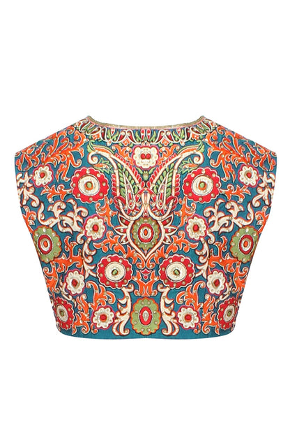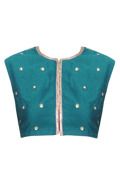 Stunning Teal Blouse with Back Floral Embroidery and Gottapati Border