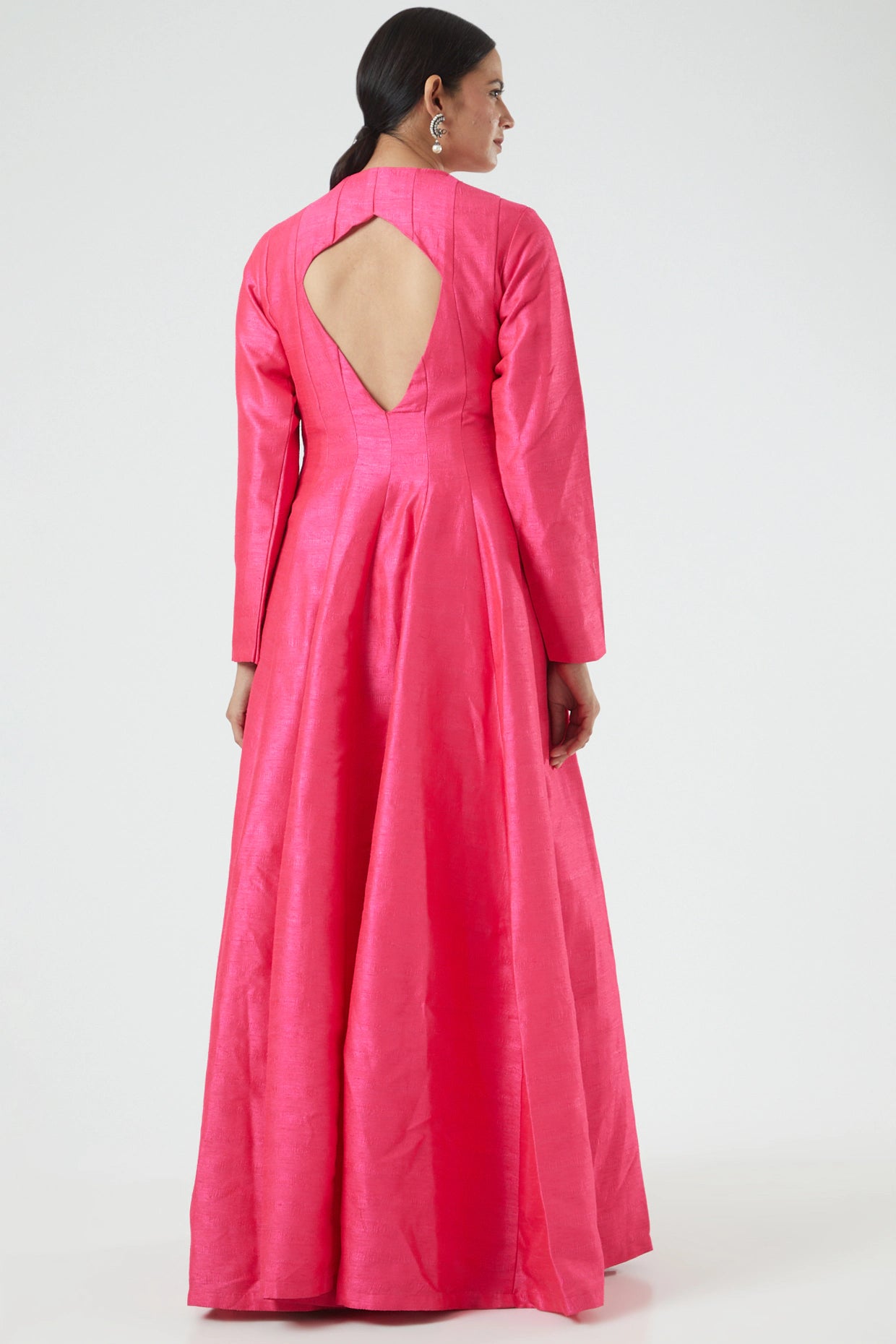 FuchsiaPink Floral Embroidered Jacket/Kurta Set