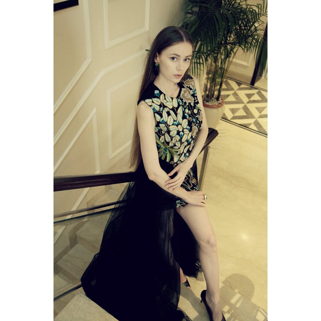 Black Cocktail Gown - Make a dramatic entrance in this sophisticated black cocktail gown, featuring intricate embroidery and a stunning net flare. The sleek black fabric provides a chic backdrop for the delicate threadwork, while the net flare adds a touch of whimsy and romance. The gown's fitted silhouette and flowing net layers create a mesmerizing effect, perfect for cocktail parties, formal events, or red-carpet occasions. This enchanting ensemble is sure to turn heads, wrapping you in an aura of elegance and poise