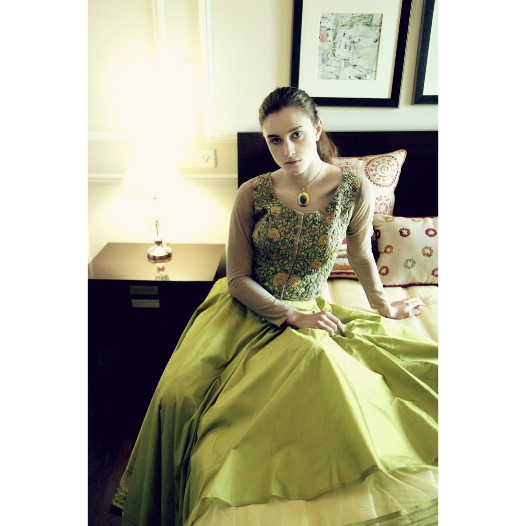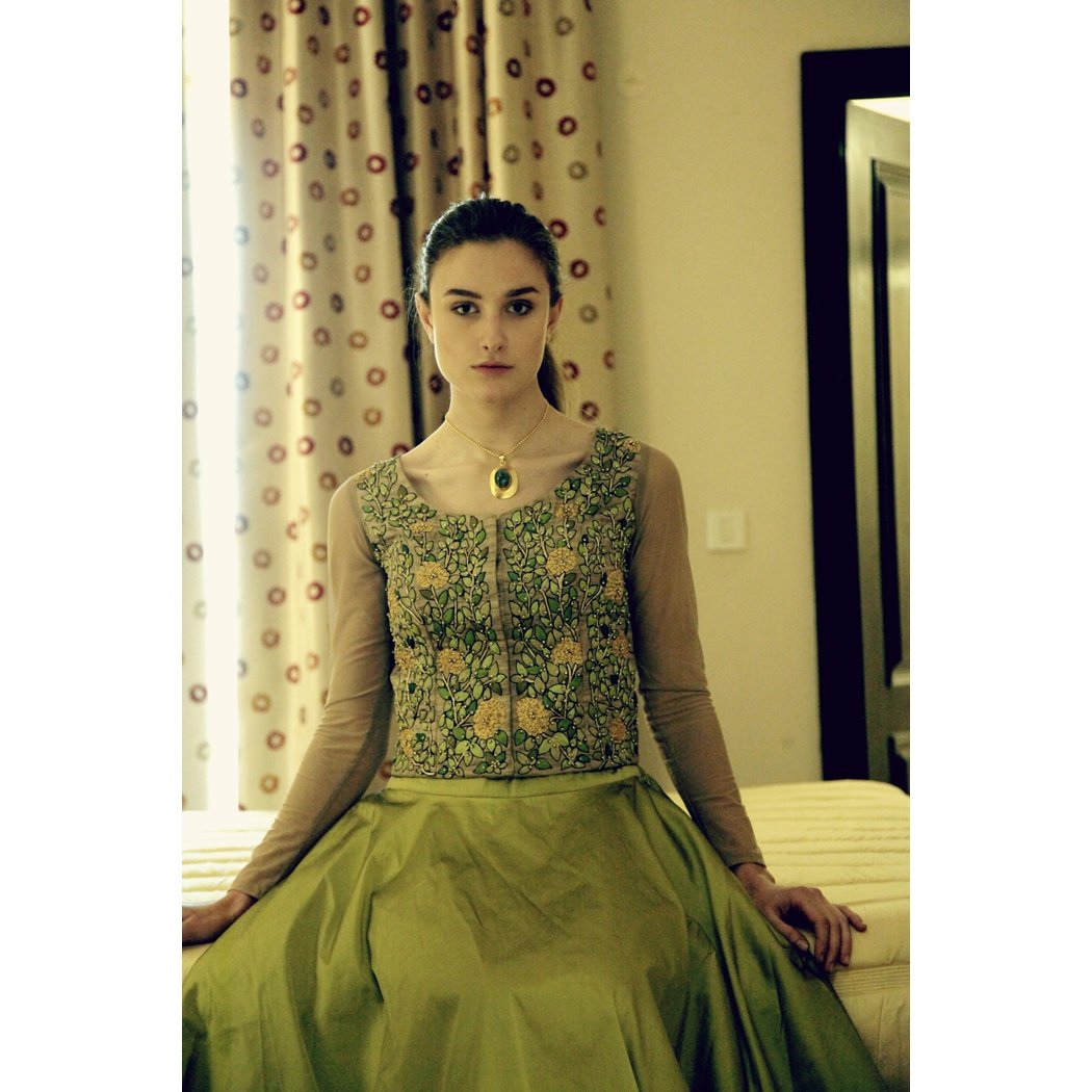 Beige Leaf Embroidered Jacket and Lime Skirt - Embody the beauty of nature in this stunning ensemble, featuring a beige jacket with intricate leaf embroidery paired with a vibrant lime skirt. The delicate threadwork on the jacket brings to life the gentle hues of autumn, while the lime skirt evokes the freshness of spring. The contrasting earthy and citrus tones create a mesmerizing effect, perfect for formal events, weddings, or special occasions where you want to make a statement with your unique sense of style. This ensemble is a true masterpiece, wrapping you in an aura of natural elegance and sophistication