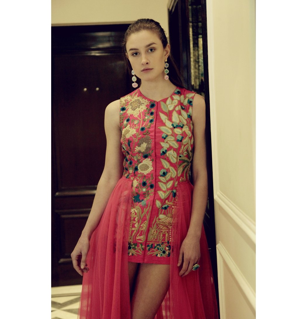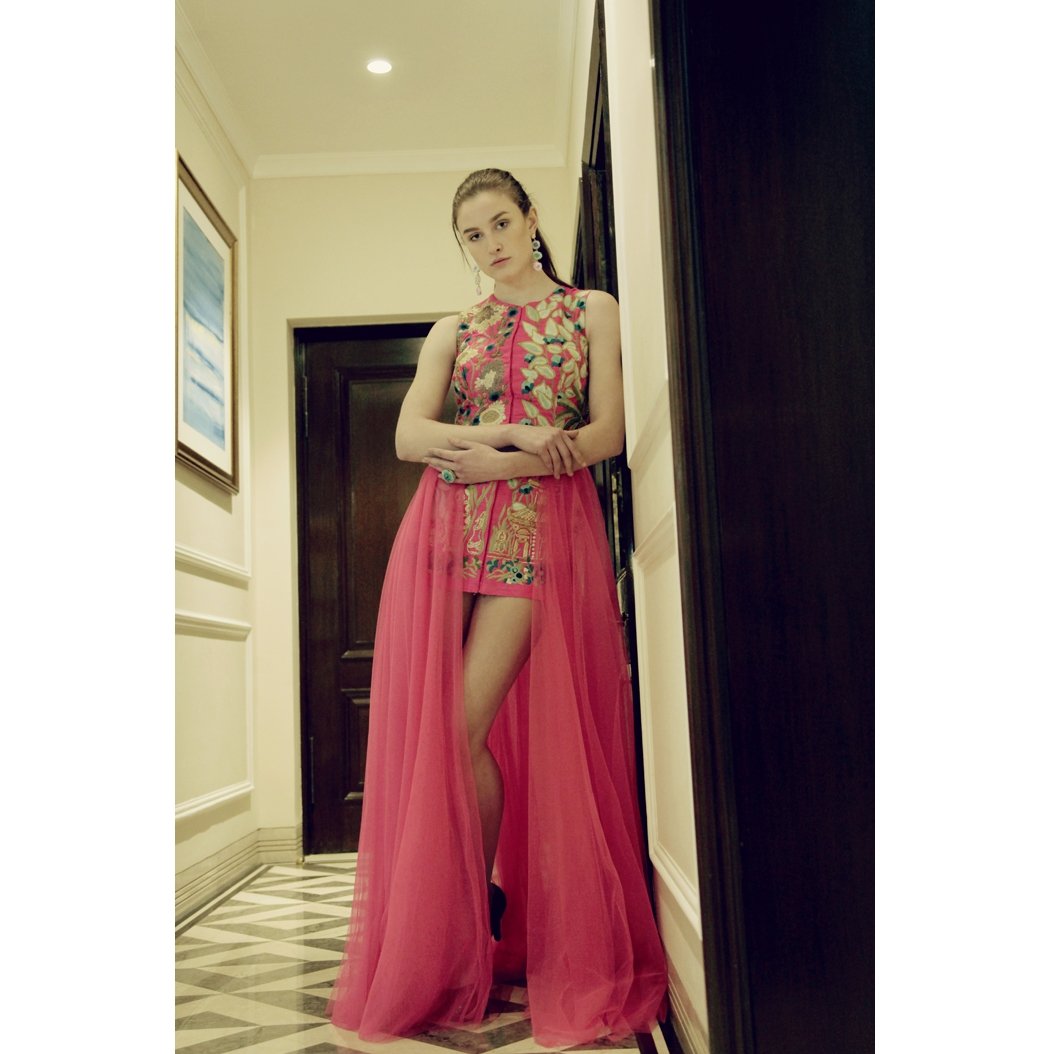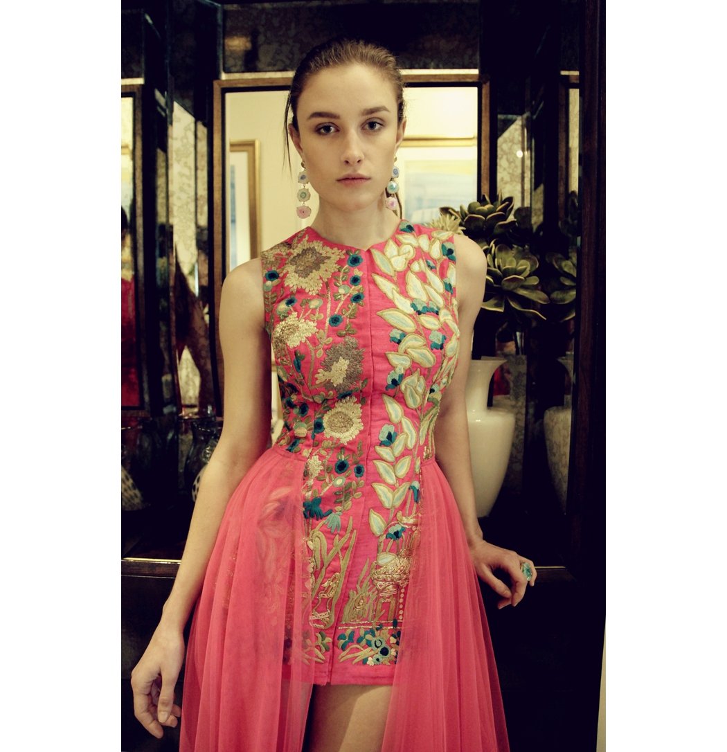 Pink Flared Dress Gown with Heavy Embroidery - Be the epitome of elegance in this stunning pink flared dress gown, adorned with intricate and opulent heavy embroidery. The soft pink hue radiates warmth and femininity, while the flared silhouette creates a dramatic and flowing effect. The heavy embroidery adds a touch of luxury and sophistication, perfect for formal events, weddings, or special occasions where you want to make a statement with your refined taste. This enchanting gown is a true masterpiece, wrapping you in an aura of rosy radiance and poise